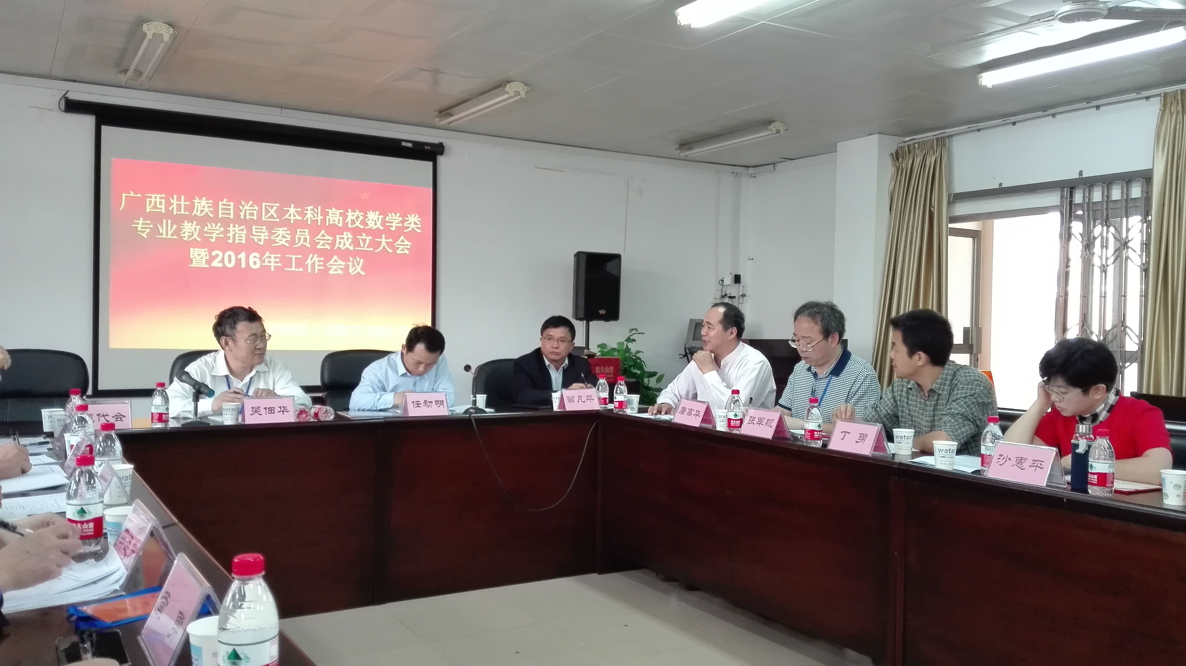 2016年4月20日——22日,广西壮族自治区本科高校数学类专业教学指导委员会在广西师范大学召开。自治区高教处任初明处长、教学指导委员会主任吴佃华教授、以及各高校教学指导委员会委员共26人参加了会议。公司董事长、广西数学会理事长易忠教授应邀到会表示祝贺。公司李修清教授作为自治区本科高校数学专业教学指导委员会委员之一,应邀出席了会议,并做了发言。