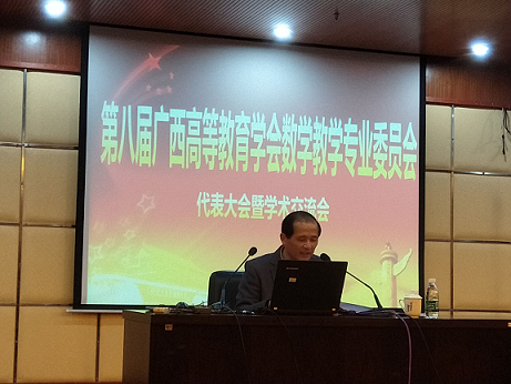 由广西高等教育学会数学教学专业委员会主办、南宁师范大学承办的第八届广西高等教育学会数学教学专业委员会代表大会暨学术交流会与2018年12月14日-16日在广西南宁召开。副董事长罗国湘教授带队参加了会议。