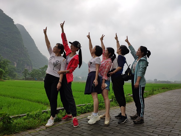 六月初的阳朔,正是一年中风景最美的季节。凉爽的空气中飘着绵绵细雨,碧秀的青山上雾气腾腾,些许人撑着些许把小伞,畅游在旧县码头和骥马村码头之间的美丽山水之中,呈现出一幅亲近自然、山水相依的绝佳意境。在教职工欣赏美景之际,纷纷拿出手机记录下这绝美的时刻。