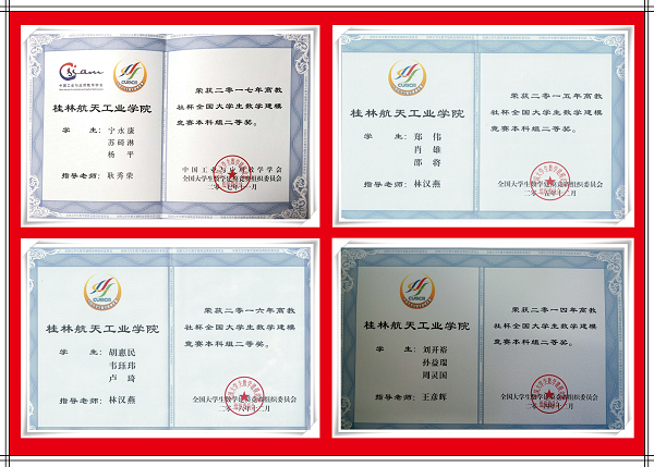 承担了全国老员工数学竞赛等工作,从2014年起,共获广西区一等奖90项,广西区二等奖151项,广西区三等奖185项;一等奖和二等奖的获奖率5年来均占广西区14所同类本科院校一、二等奖获奖总数的近一半,获奖人数和获奖比例5年来稳居全区同类院校榜首。
