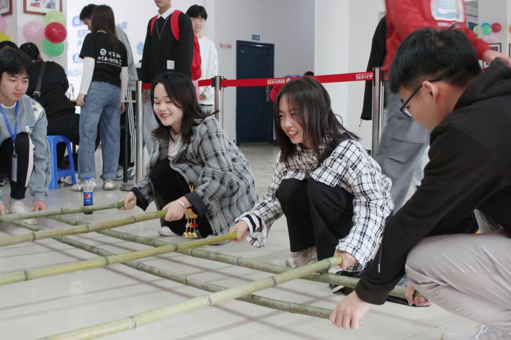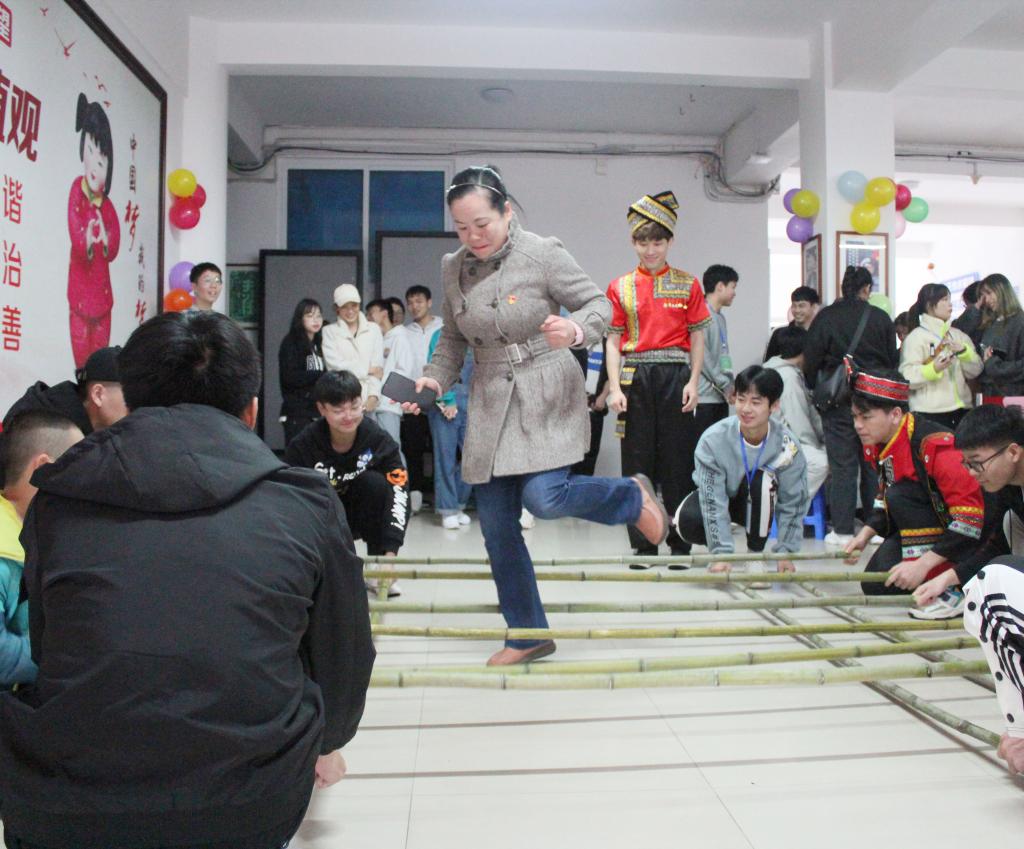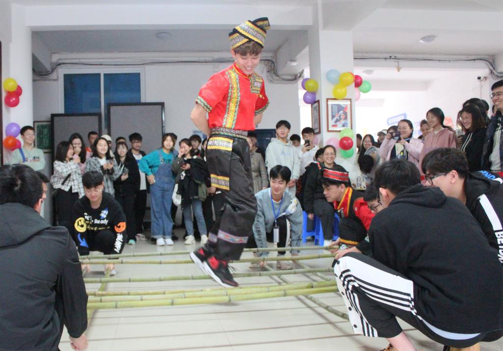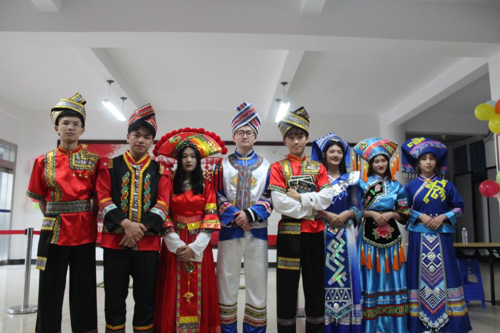 活动刚开始,民族文化知识竞答区域就人头攒动,有序进行报名答题。通过竞答,加深了同学们对“三月三”节日的了解。在竹竿舞区域,一名身穿民族服饰的同学教大家跳竹竿舞,中场休息时,老师与同学们共唱了一段山歌,整个场地顿时变成了山歌的海洋。在抛绣球区域里,也是充分展现了同学们的默契配合度。镜头转向民族服饰拍照,同学们身着民族服饰,定格不一般美丽与帅气,也为此次活动增添了不少色彩。