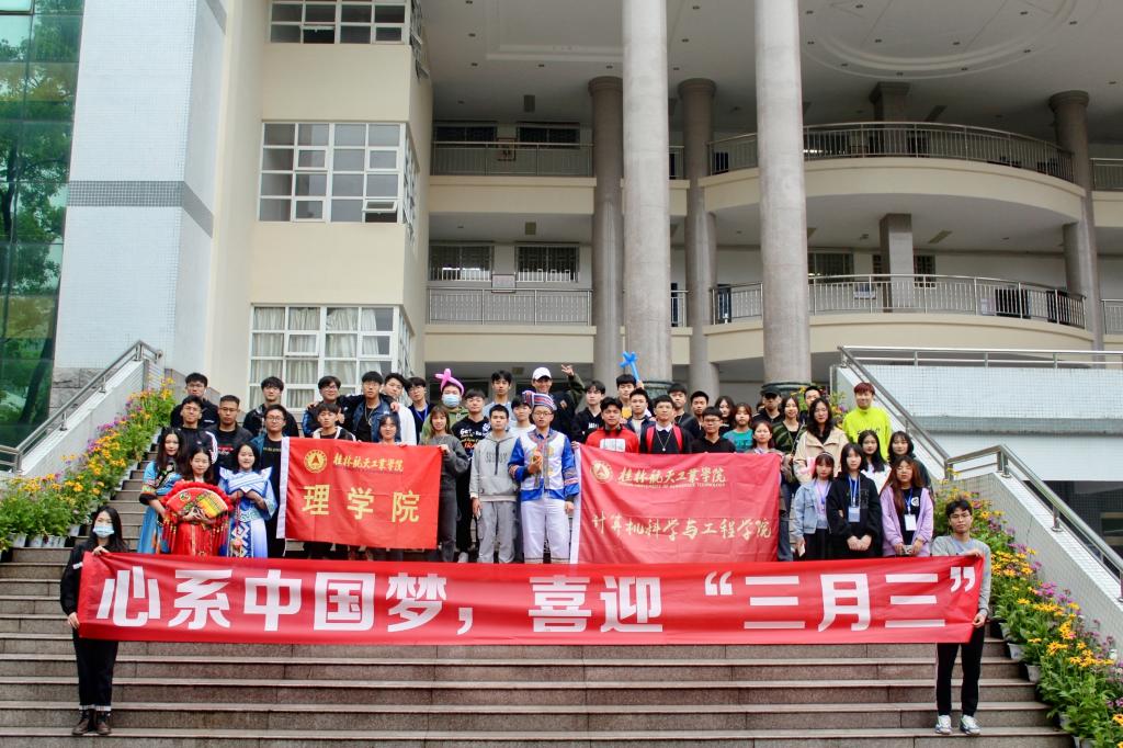 在“三月三”广西特有的民族节日到来之际,为了让同学们接受传统文化的熏陶,弘扬优秀的民族文化,2021年4月11日12:40分,由公海gh555000aa线路检测中心与计算机科学与工程公司携手策划的“心系中国梦,喜迎三月三”主题活动于北校区青春广场举办。活动分为民族文化知识竞答、抛绣球、民族服饰拍照以及跳竹竿舞,共四项活动。参与一个活动即可获得一个小印章,集满4个小印章可以兑换小奖品。