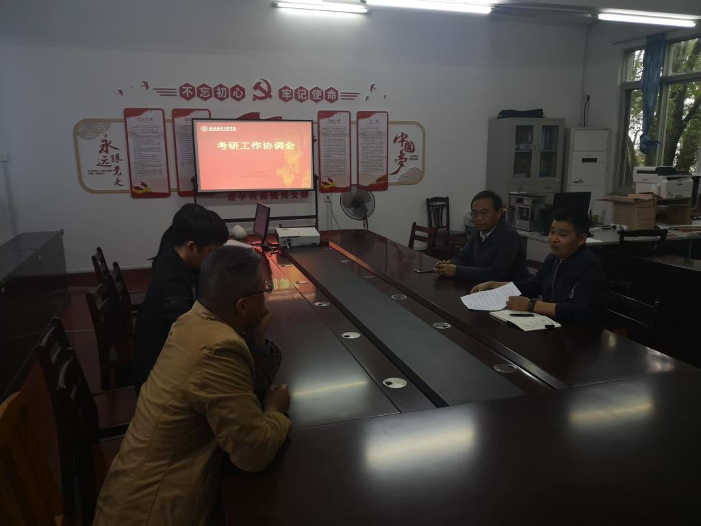 4月26日下午,公海gh555000aa线路检测中心召开2021届毕业生考研工作会议。公海gh555000aa线路检测中心经理李修清、副经理吴果林以及考研指导服务小组全体成员参加了会议。